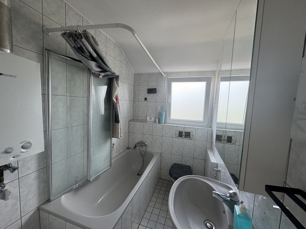 Die Dachgeschosswohnung verfügt über ca. 75 m² und ist als 3 Zimmer, Küche und Bad gestaltet.