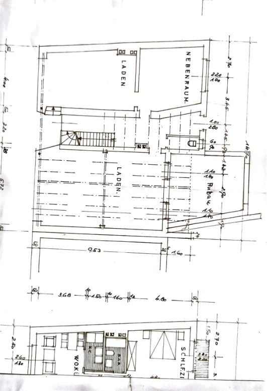 Die Gesamtfläche beträgt rund 80 m² und teilt sich in eine Verkaufsfläche von ca. 55 m² sowie eine Nebenfläche mit 2 Räumen (Küchenzeile) von ca. 25 m² auf.