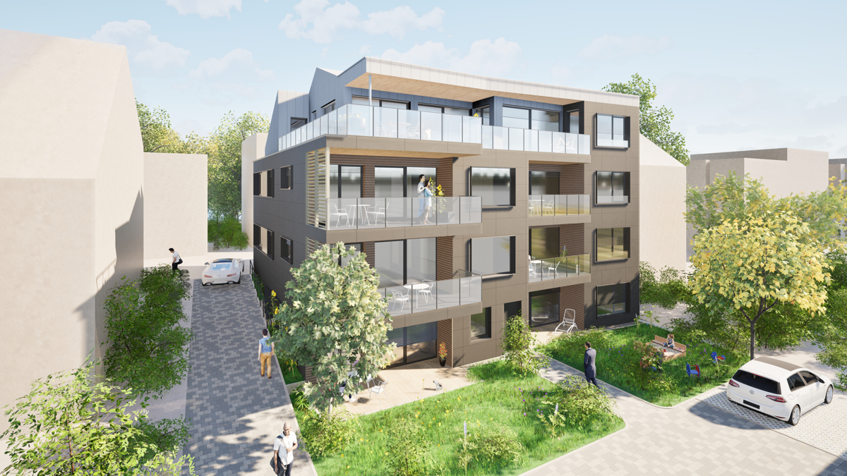 - Ökologischer Holzbau- Die Außenwände werden mit einer hochwertigen vorgehängten, hinterlüftenden und nahezu sanierungsfreien Fassade ausgeführt