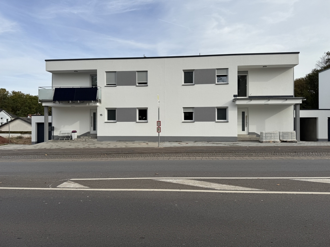 Die Wohnung (Nr.4) befindet sich vom Eingang gesehen rechts im Obergeschoss eines Neubau mit 4. Wohnungen, welcher als dreigeschossiger Baukörper mit zwei Vollgeschossen, Flachdach und einem Keller als KfW55- Energieeffizienzhaus errichtet wird. Der Zugang zu dem Haus ist barrierefrei gestaltet.