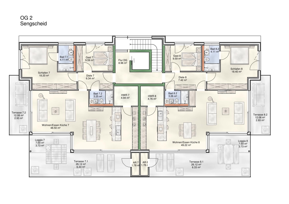 Die Grundrisse überzeugen durch klare Strukturen, lichtdurchflutete Räume und hochwertige Materialien.