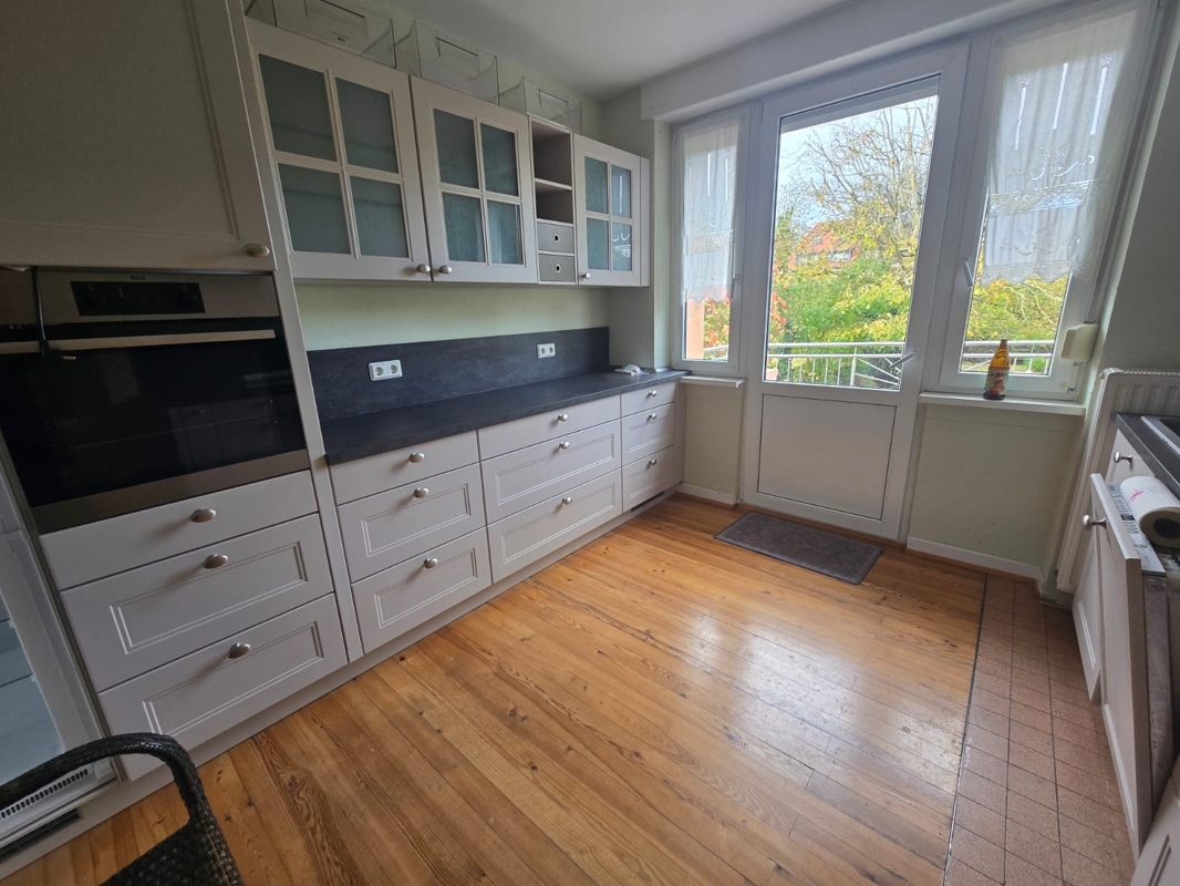 Ca. 75 m², 3 Zimmer, Küche, Bad und Balkon.