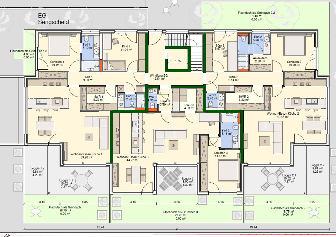 Es wird ein moderner energetischer Standard angestrebt, mit effizienter Heizung, optimaler Dämmung um Betriebskosten niedrig zu halten und ein gesundes Wohnraumklima zu gewährleisten. Dies trägt erheblich zu einem gesunden Wohnen und Leben bei.