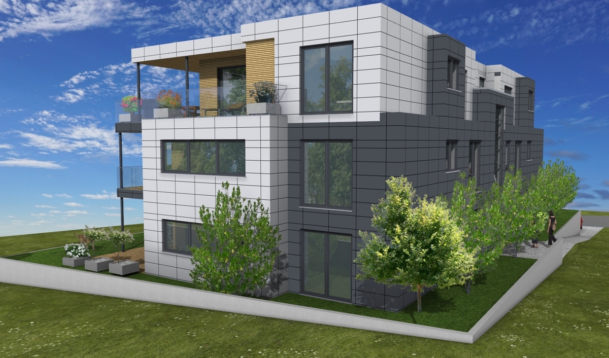• hochwertige hinterlüftete Fassade mit hoher Langlebigkeit, die das Wohnraumklima ebenso noch positiv unterstützt
