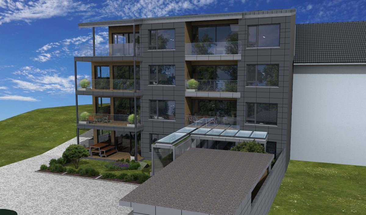 - Ökologischer Holzbau- Die Außenwände werden mit einer hochwertigen vorgehängten, hinterlüftenden und nahezu sanierungsfreien Fassade ausgeführt