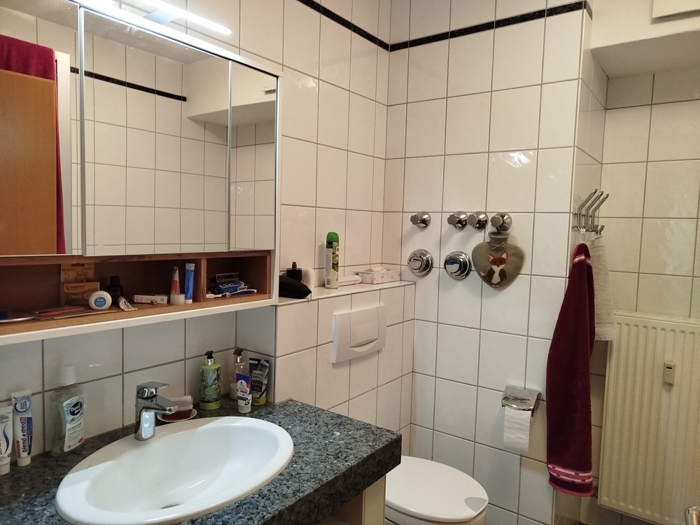 - Fliesen in Diele, Küche, Bad, Abstellraum und auf dem Balkon